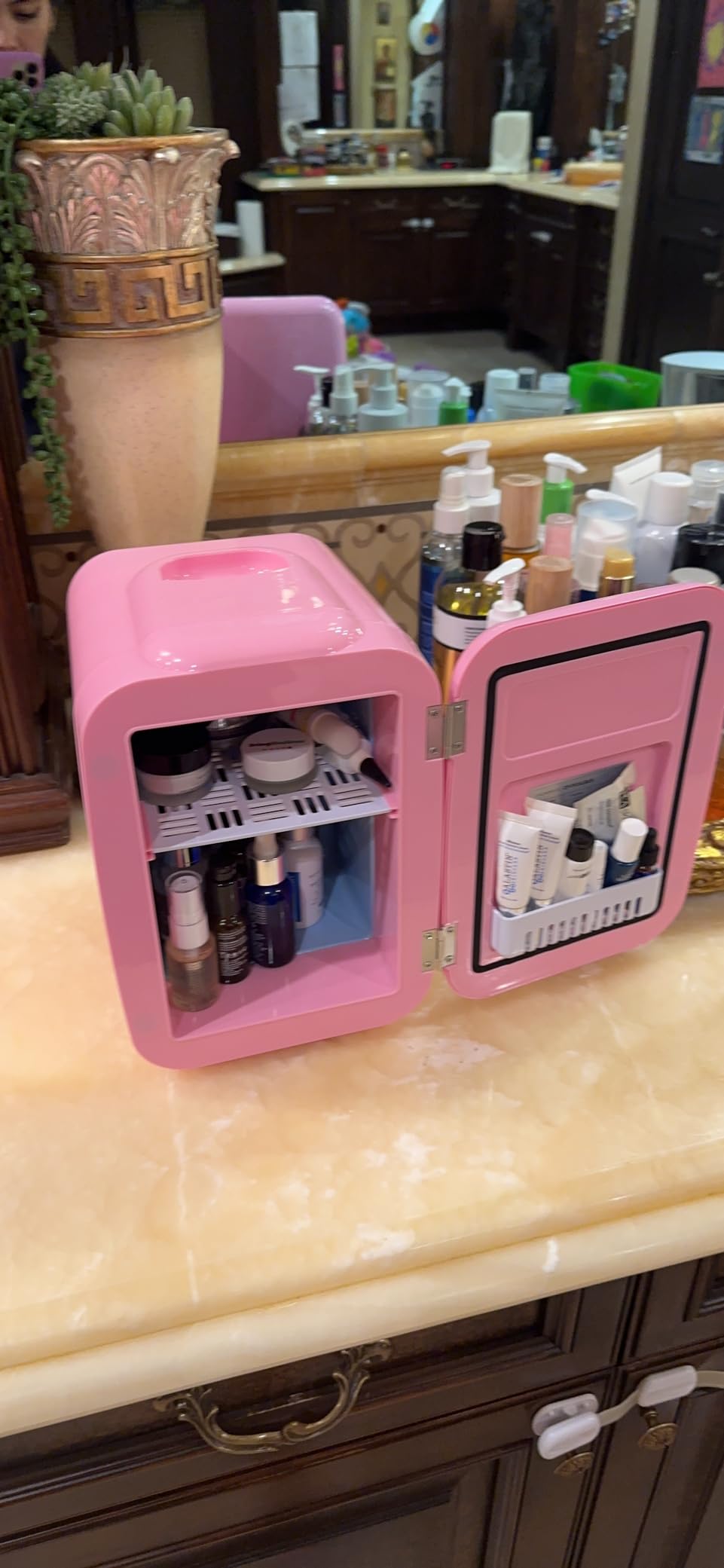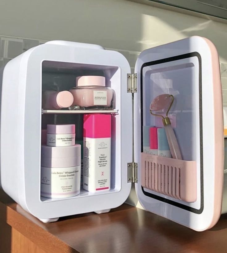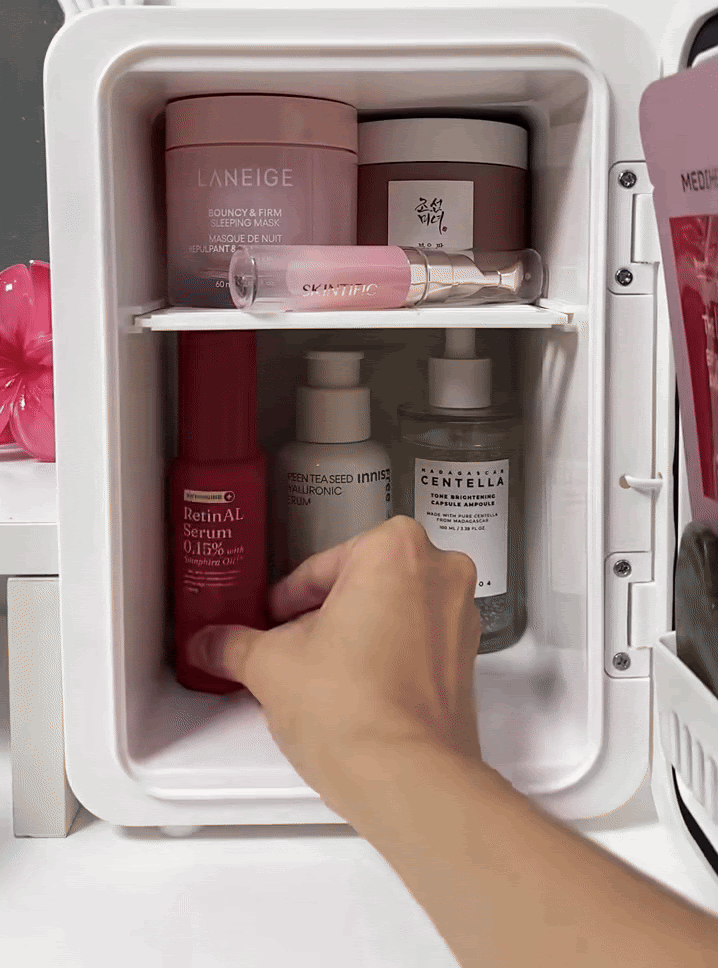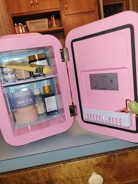 من البنات لاحظوا فرق كبير بعد استخدام ثلاجتنا الصغيرة – كريماتهم ومقشراتهم دايمًا باردة وطازجة