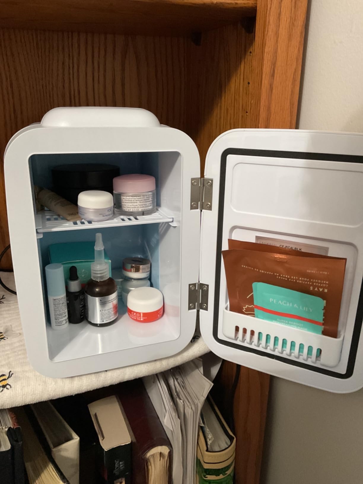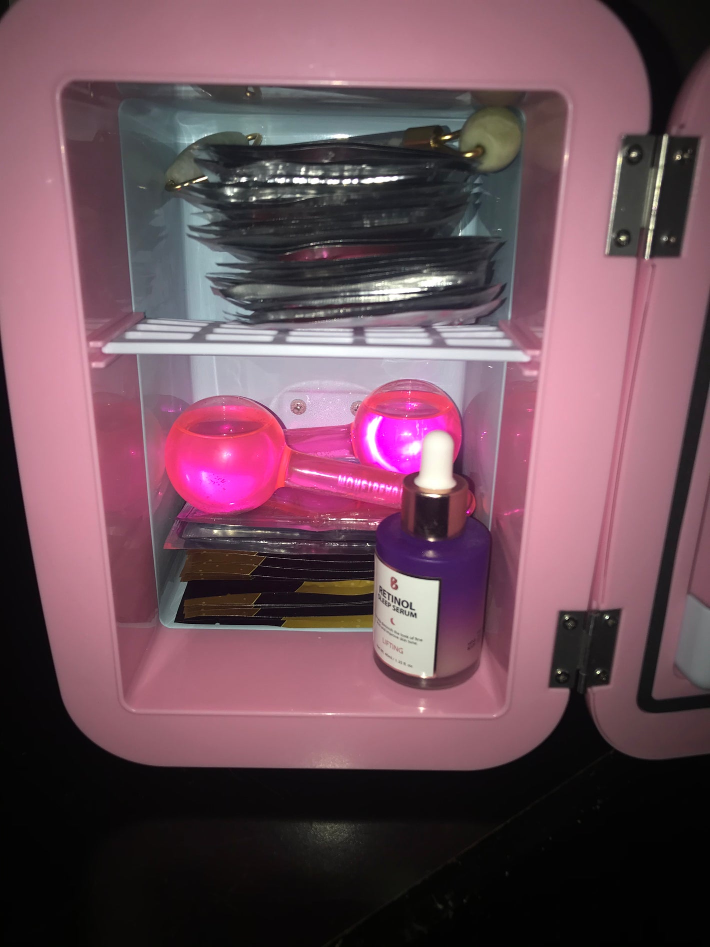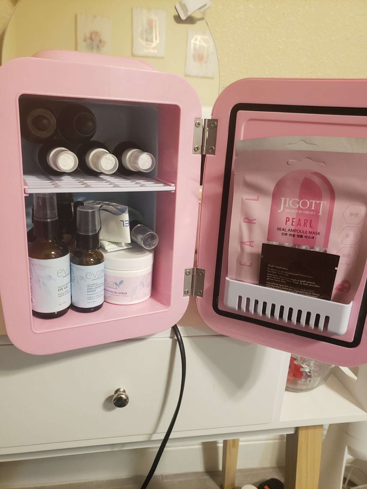 من البنات لاحظوا فرق كبير بعد استخدام ثلاجتنا الصغيرة – كريماتهم ومقشراتهم دايمًا باردة وطازجة