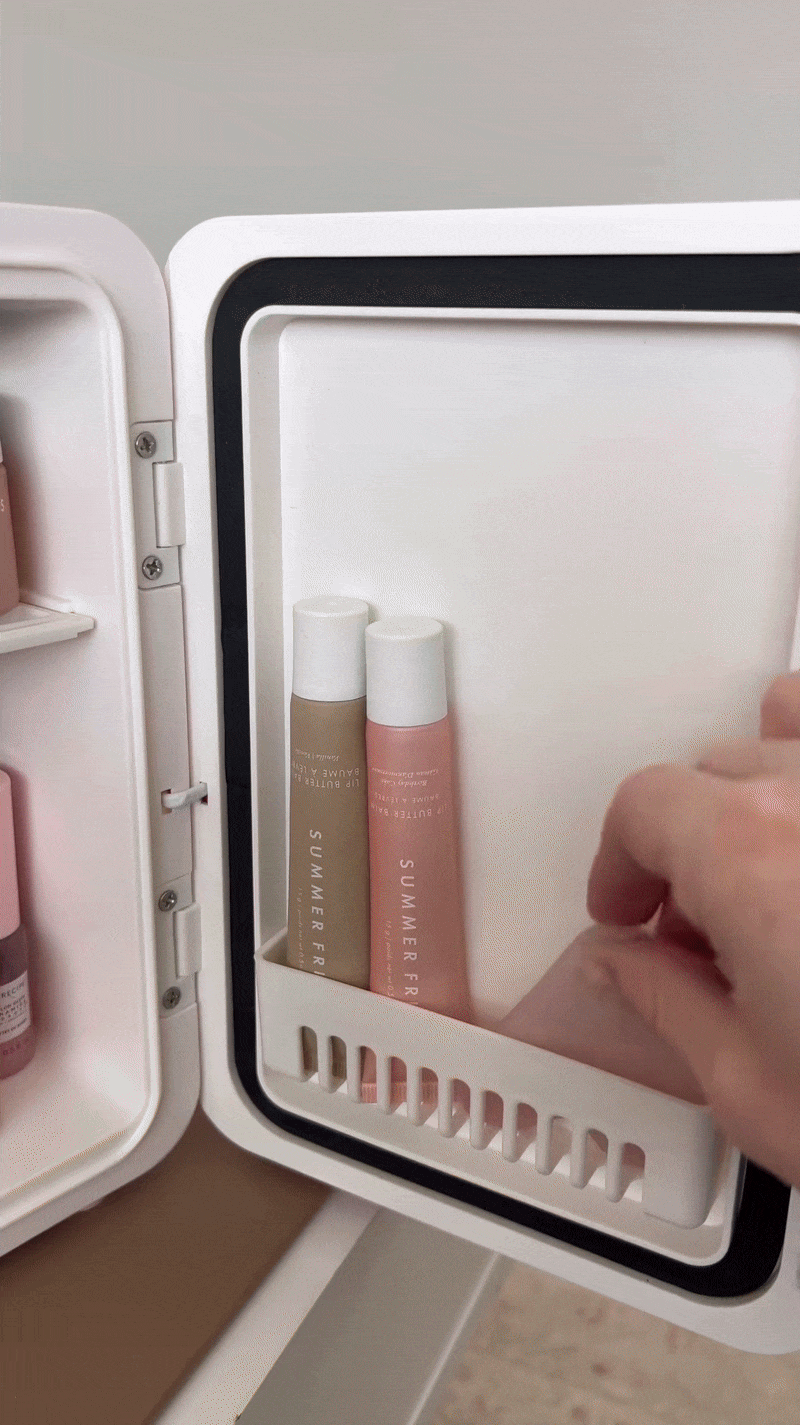 ثلاجتنا الصغيرة غير كل الثلاجات العادية! تحافظ على كريماتك ومقشراتك دايمًا باردة وطازجة، تحميها من حرارة الصيف الحارقة، وصامتة وموفرة للطاقة. حجمها مثالي لأي غرفة أو مكتب، وتجعل روتين العناية بالبشرة عندك أسهل وأمتع.